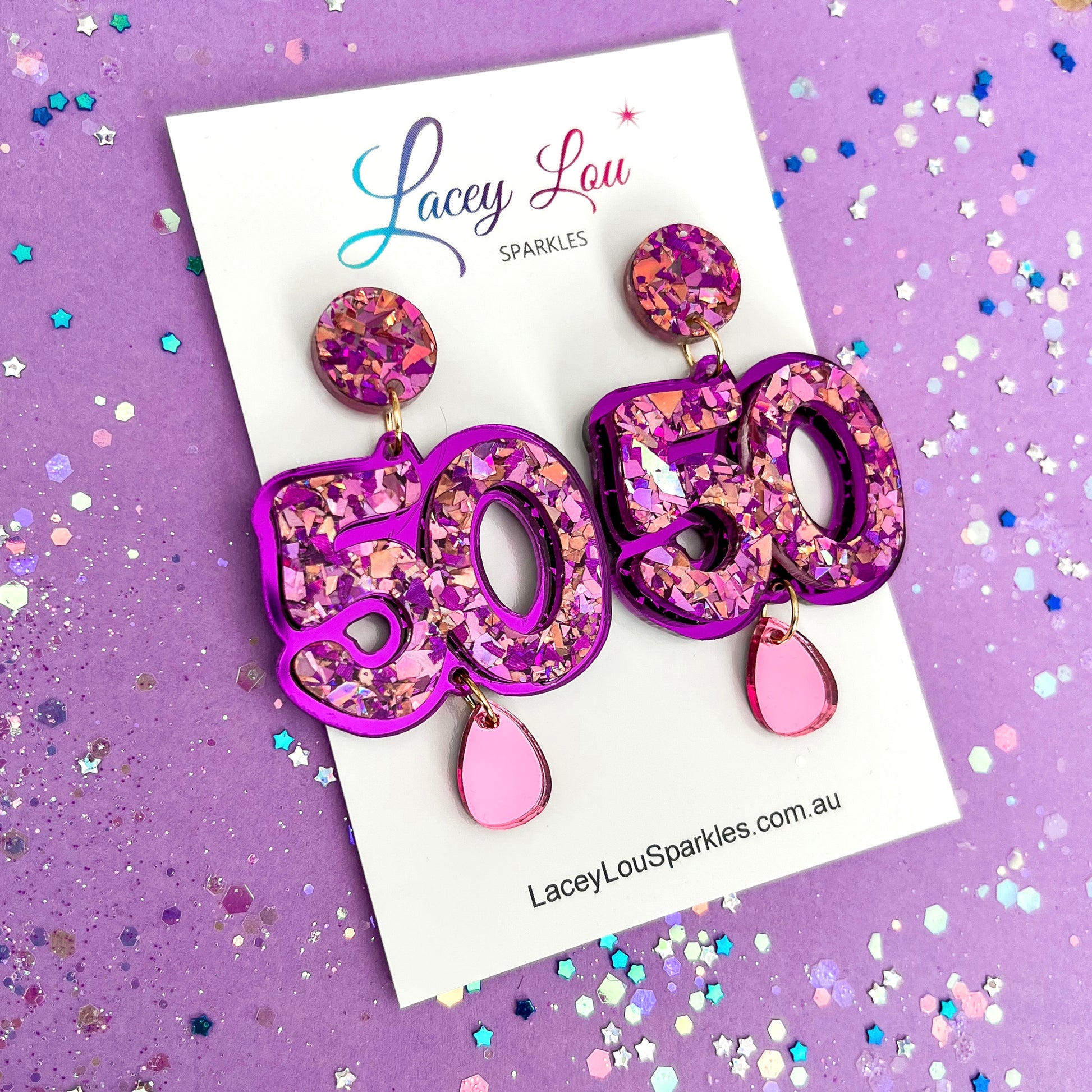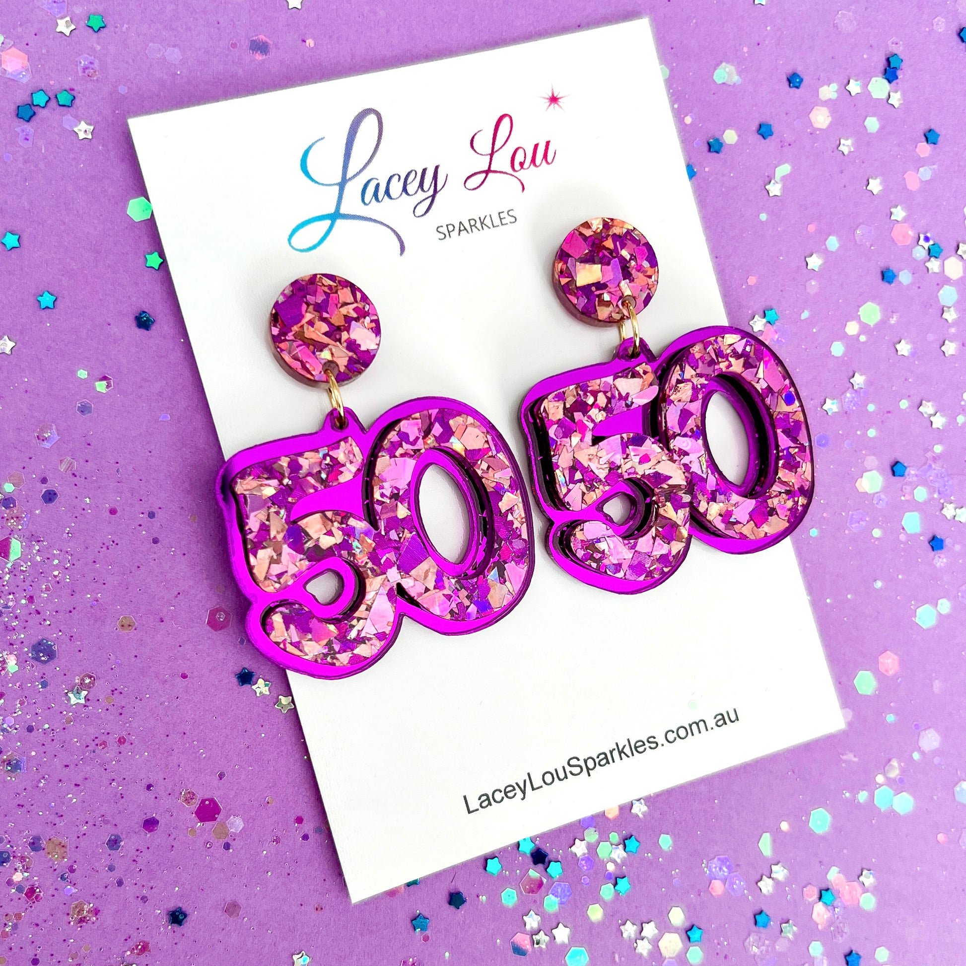Celebrate your 50th birthday in style with our sparkly fifty earrings.