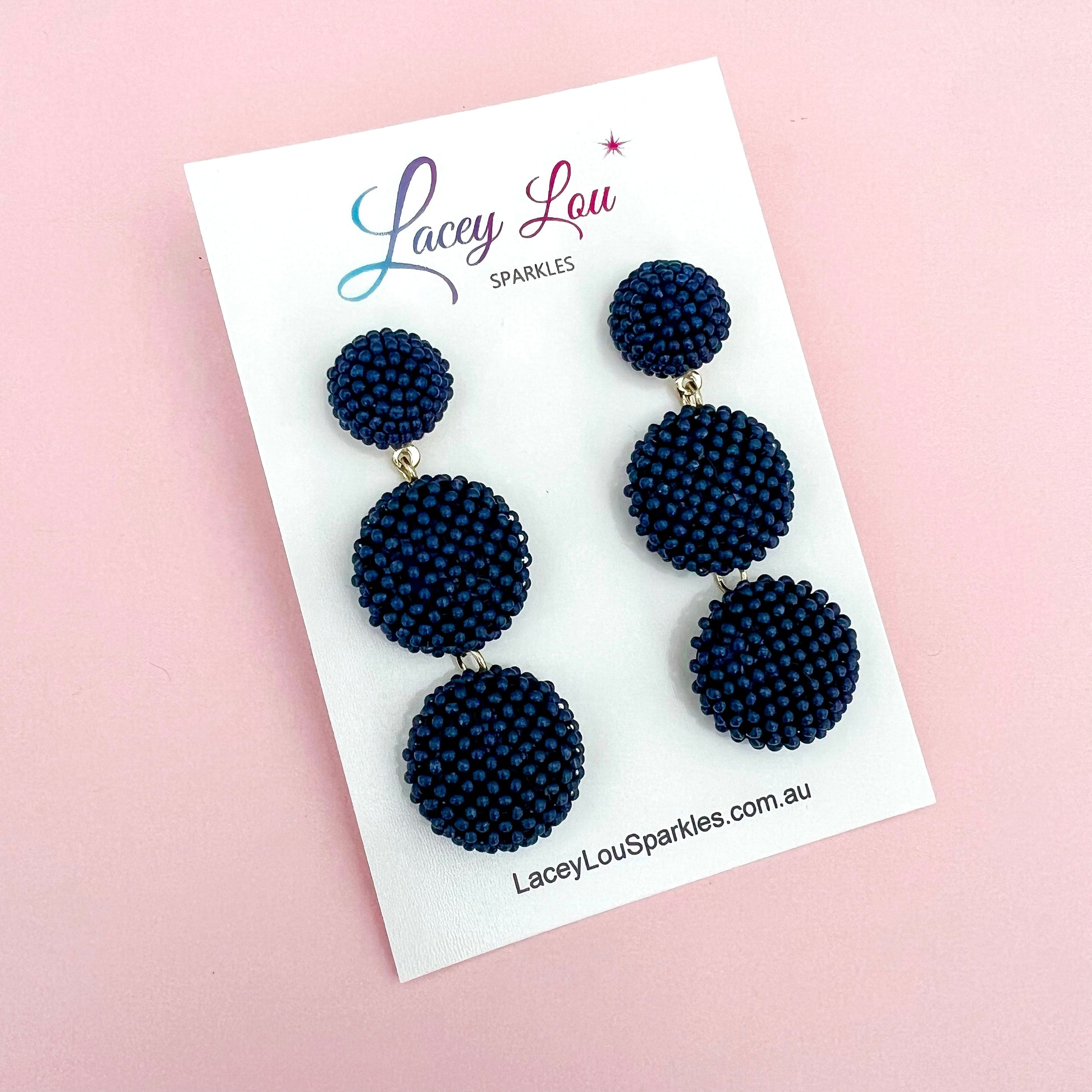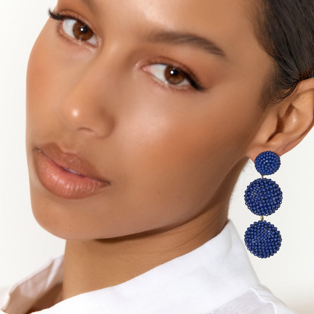 Triple stacked round beaded dangle earrings. A simple and elegant design.