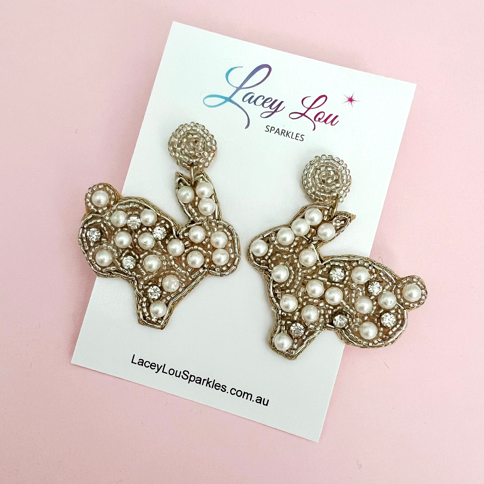 *CLEARANCE* Beaded White Pearl Easter Bunny Earrings