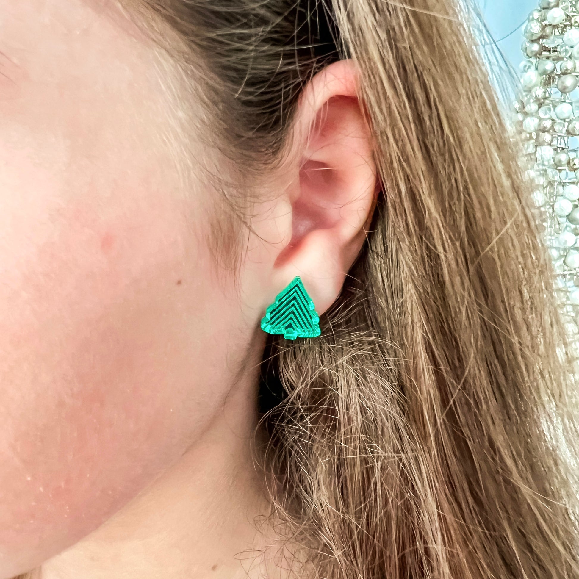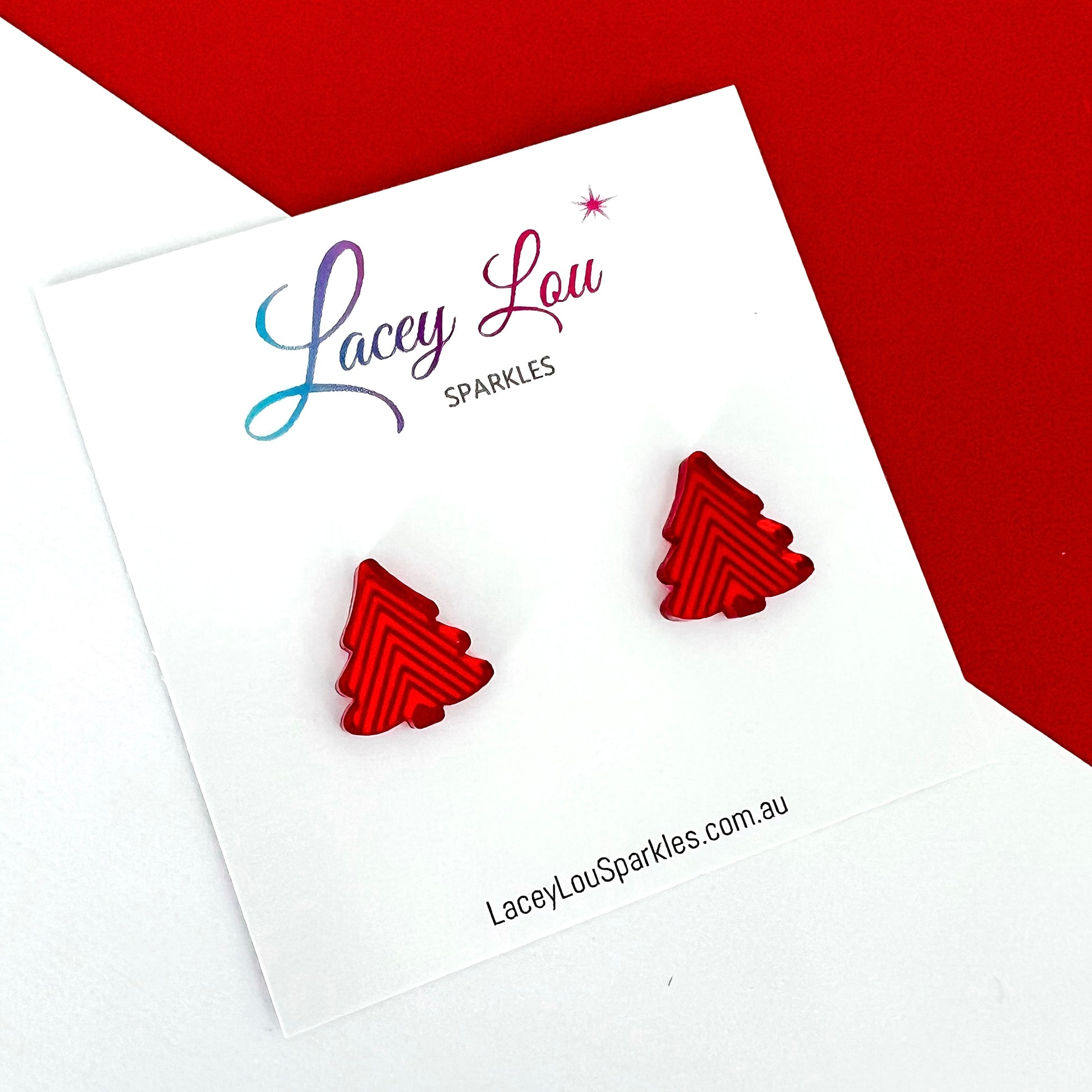 Celebrate the most wonderful time of the year with our geometric red Christmas tree stud earrings. Etched with a fun pattern, these perfectly sized small red mirror Christmas studs are super cute.