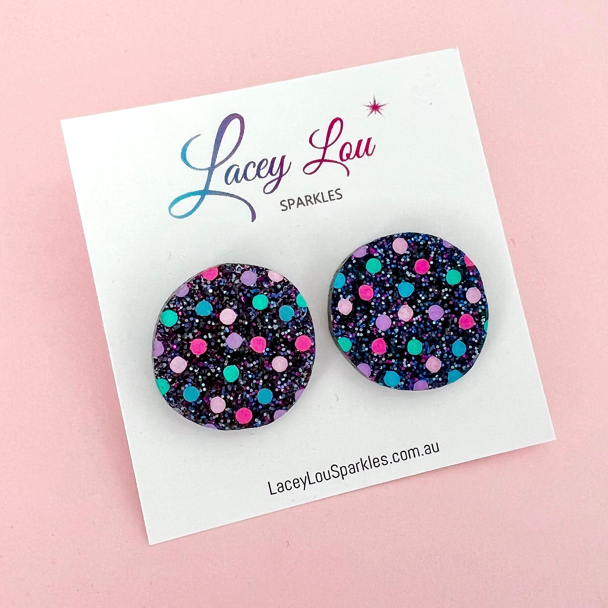 Navy Blue Glitter Dotty Acrylic Studs - Hand Painted