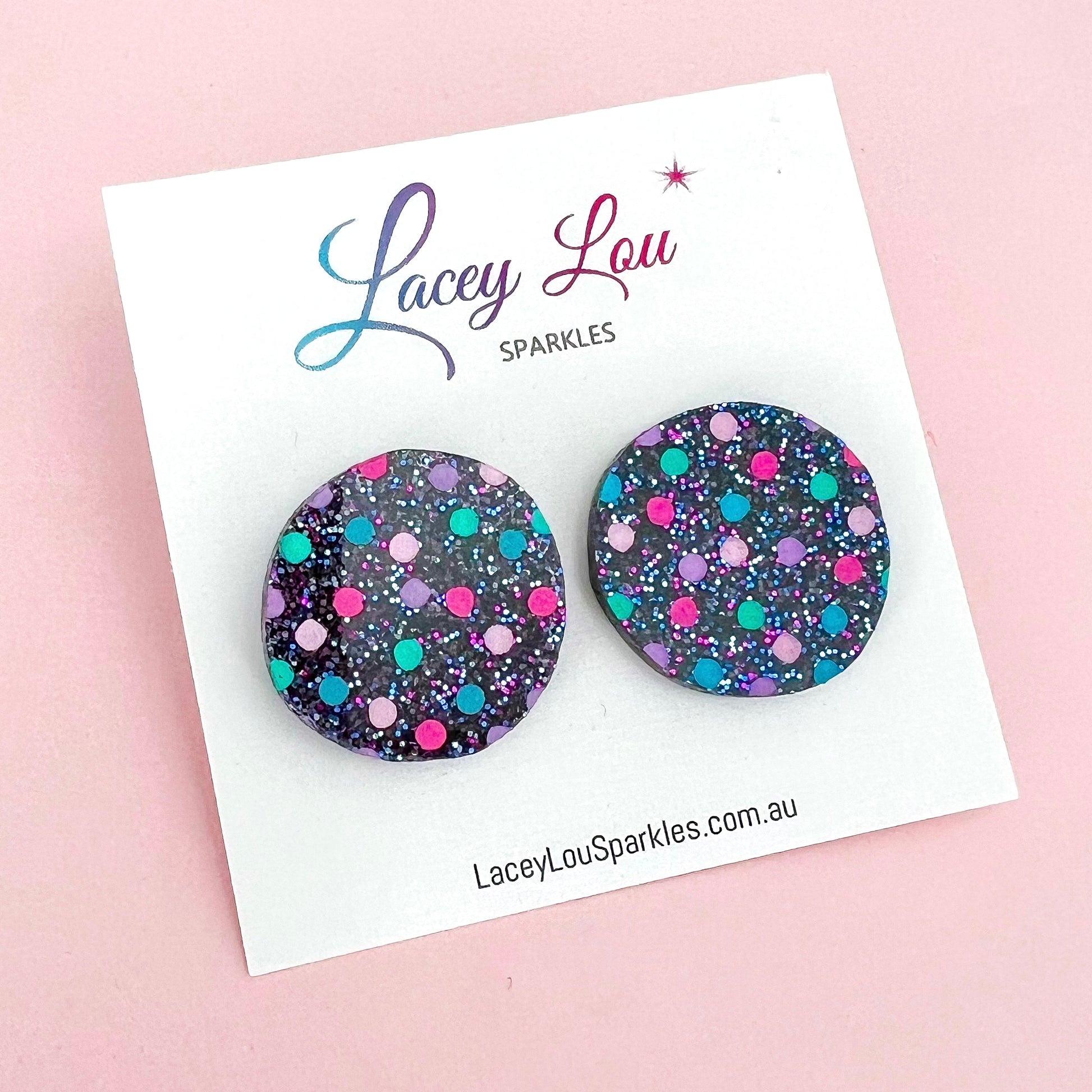 *Please note that each piece of our acrylic jewellery is unique. The density of glitter varies from piece to piece. It is not a fault of the acrylic if there are small gaps between little pieces of glitter, it is just the nature of the material and what makes it unique. The photos depicted are an indication of the earrings you will receive, but it may not be exact. In every case it will be high quality and beautiful.