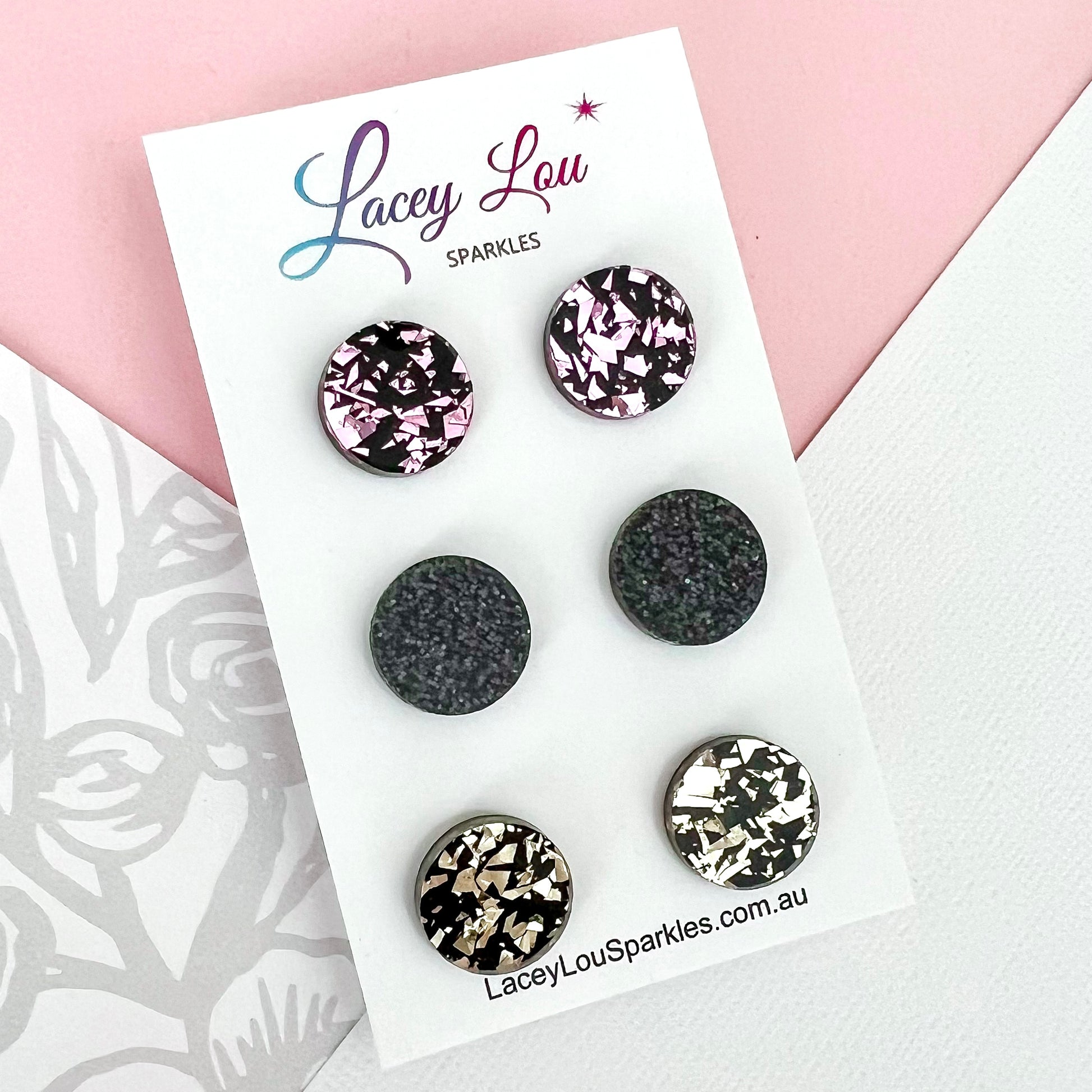 What's better than a pair of glittery heart studs.... that's right, three pairs of glittery heart studs! Lacey Lou Sparkles sparkly acrylic earring set of hearts is one of our most popular products and constantly received 5 star reviews. Add some sparkle to your ears today with these gorgeous acrylic heart studs.