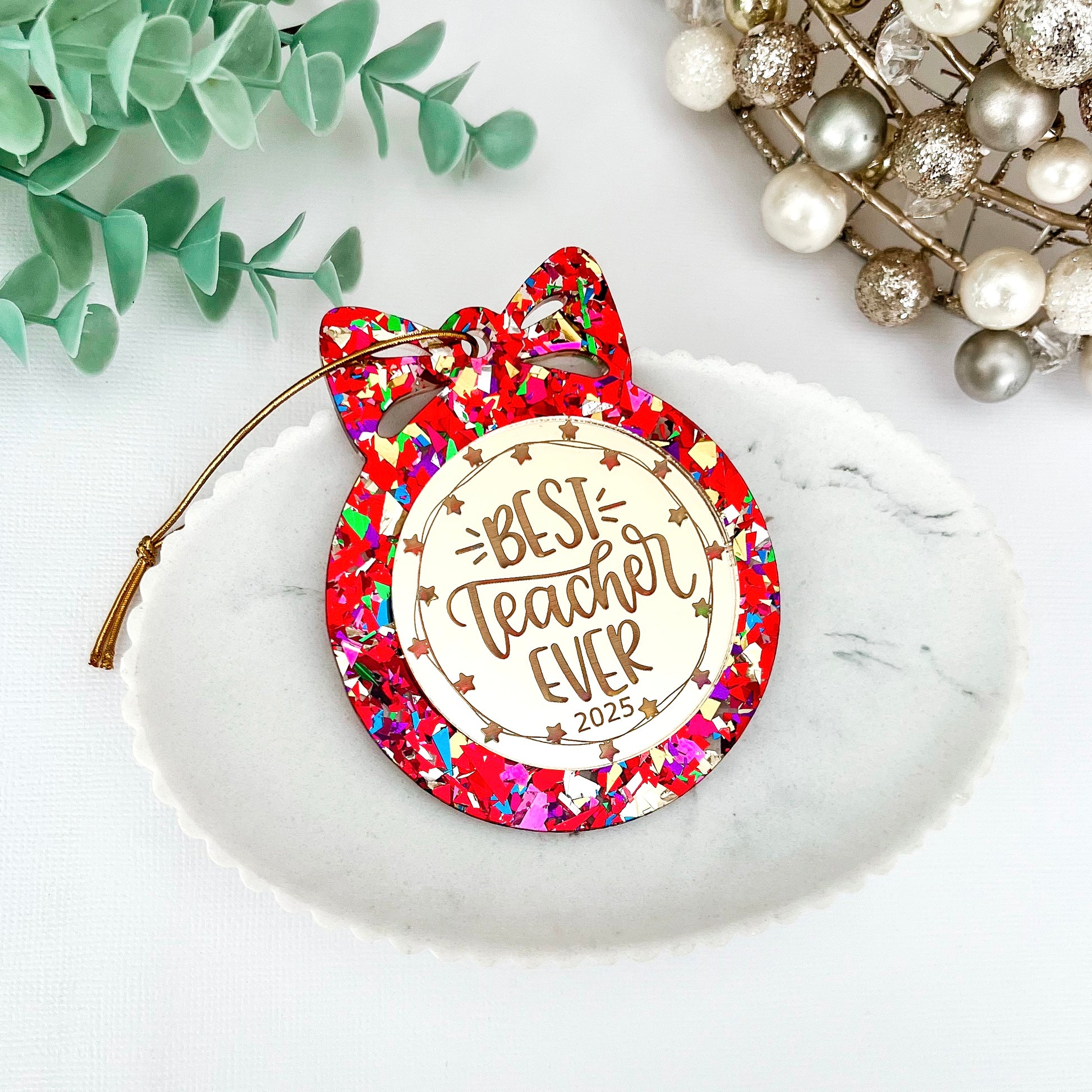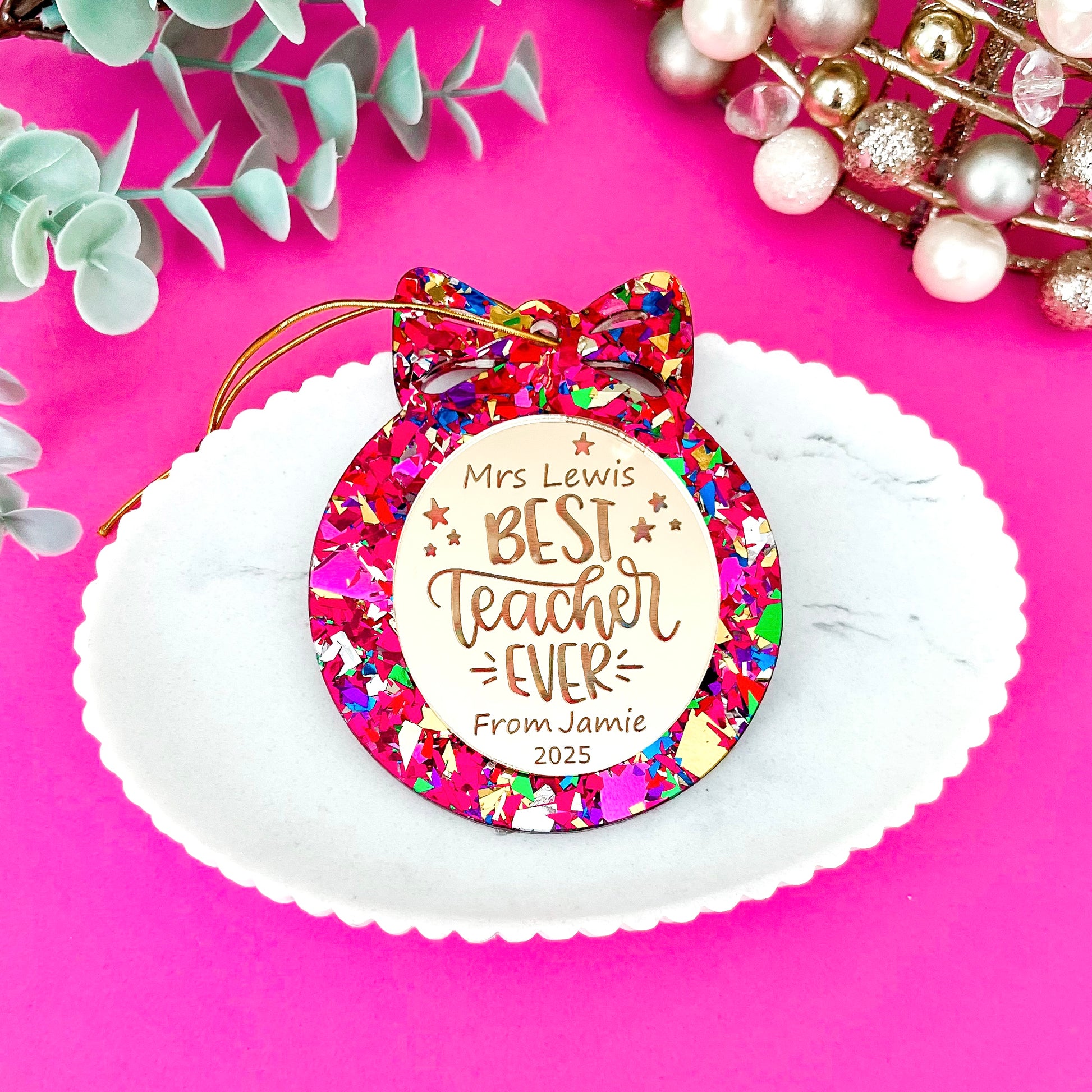 ***Please note that if the personalisation box is left blank you will be provided a generic 'Best Teacher Ever' bauble without personalisation.