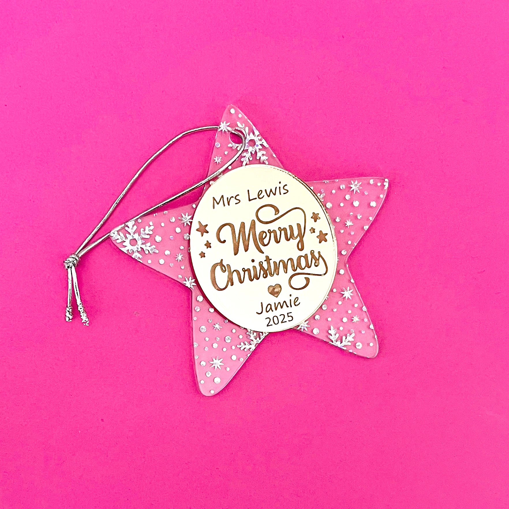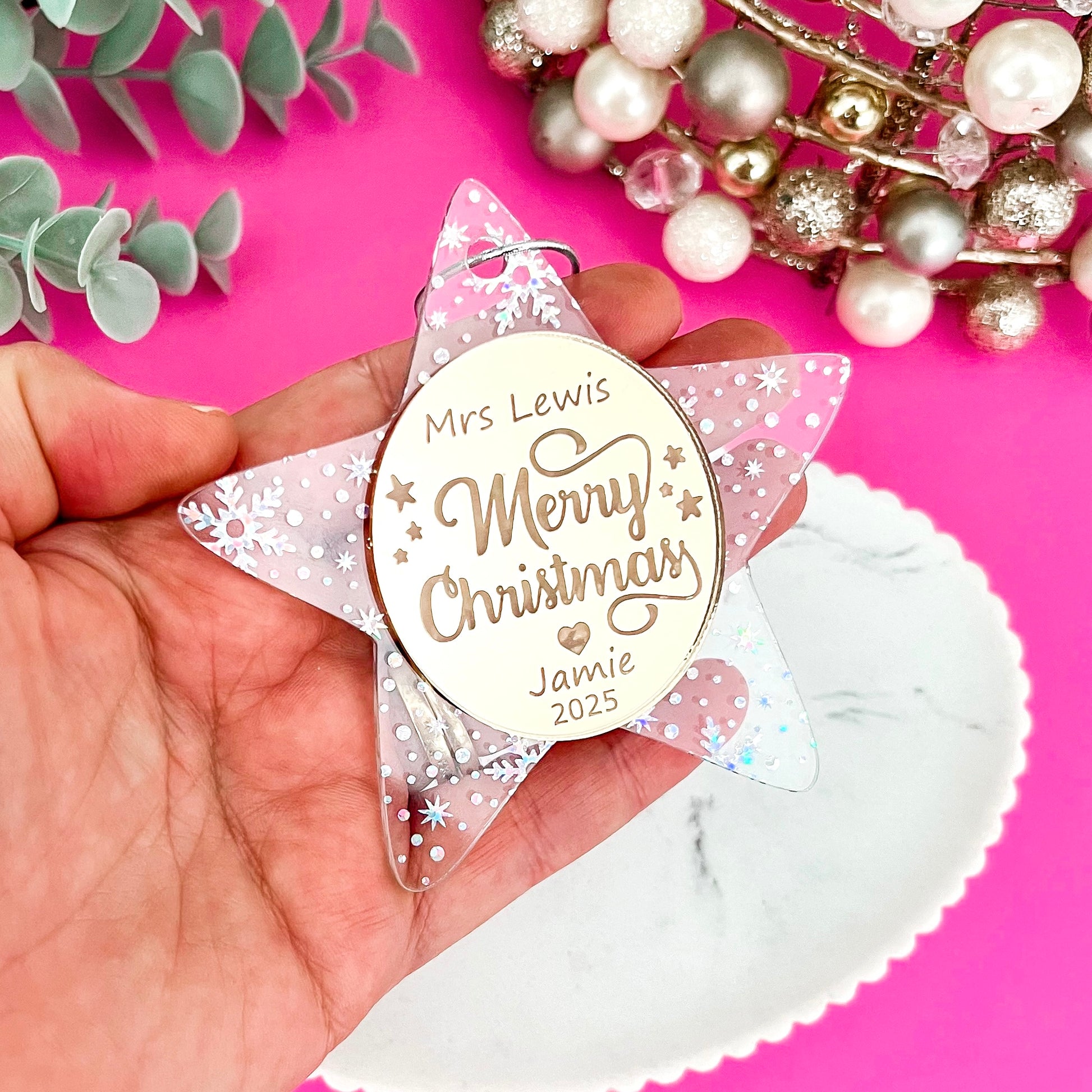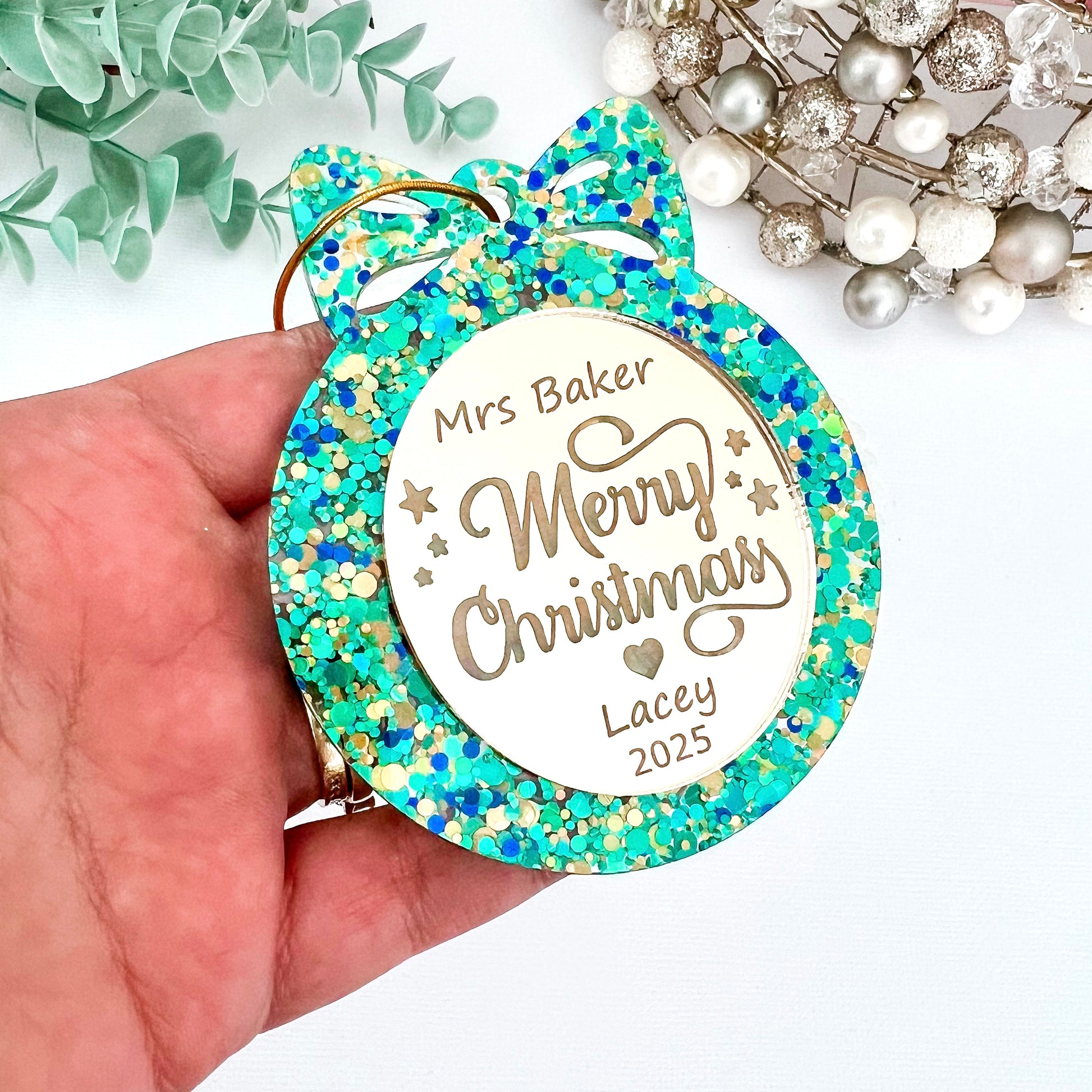 Iridescent (clear) Personalised Teacher Christmas Bauble **PRE-ORDER** 2025