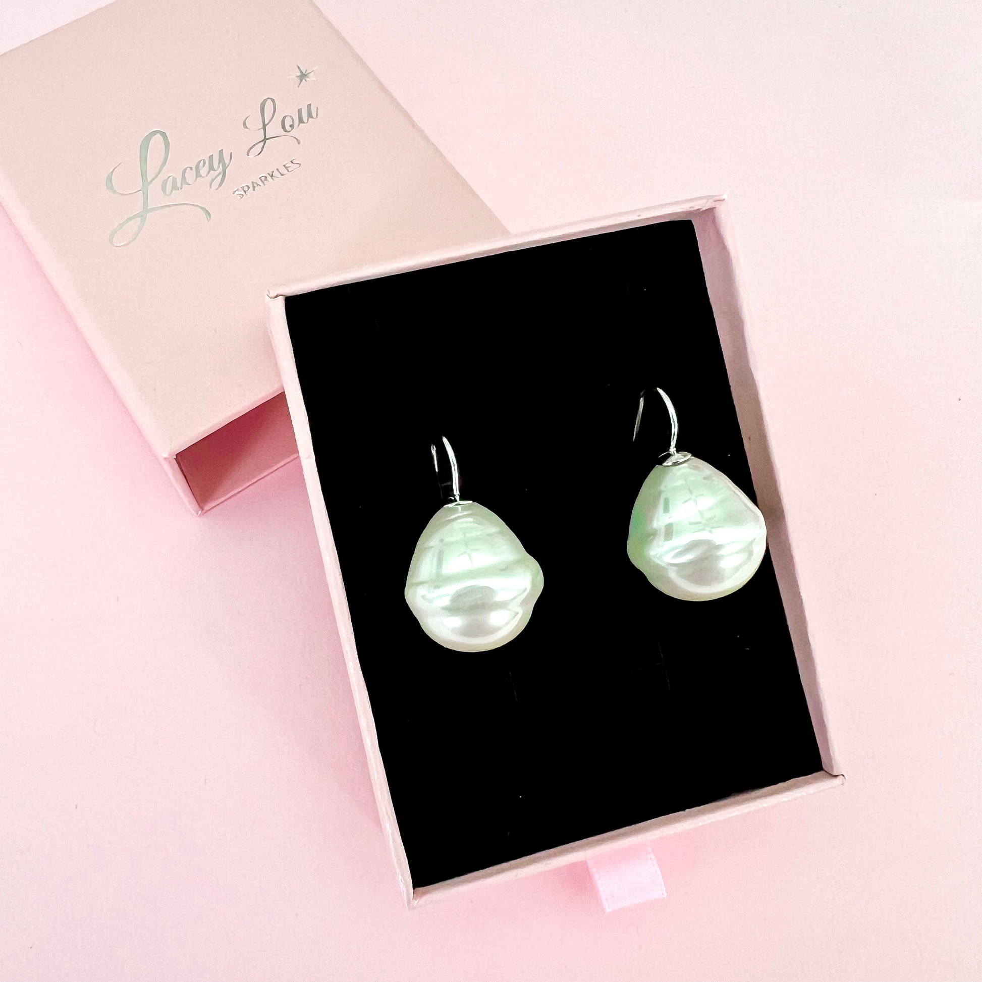 Pearls have a timeless elegance, and these stunning chunky crystal pearl earrings are no exception.