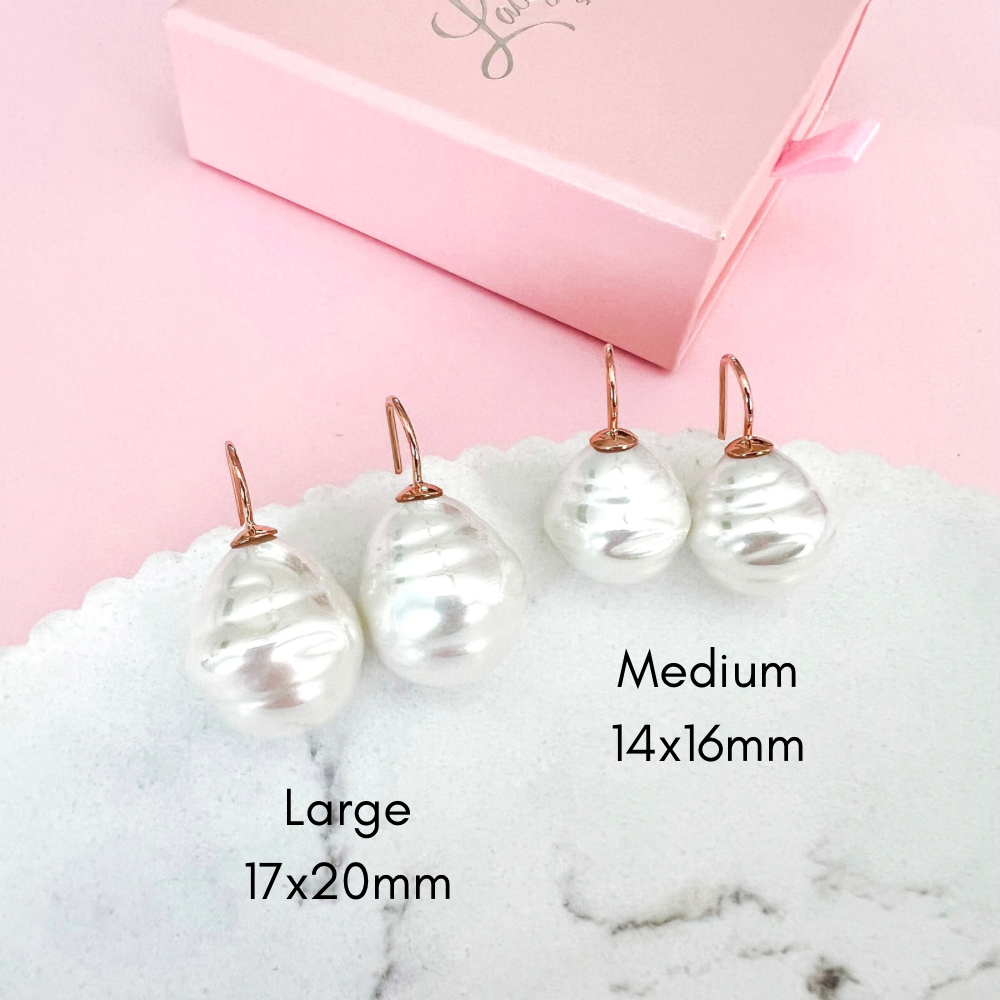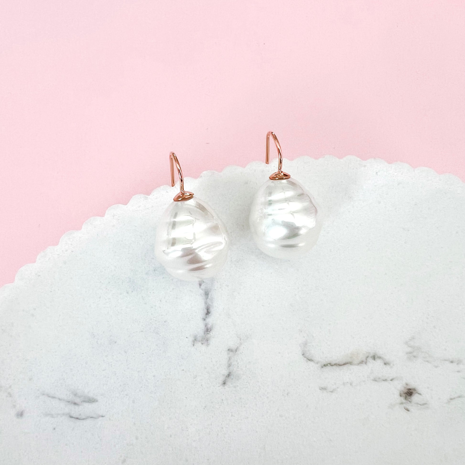 Large Spanish Pearl Earrings - Ivory / Rose Gold