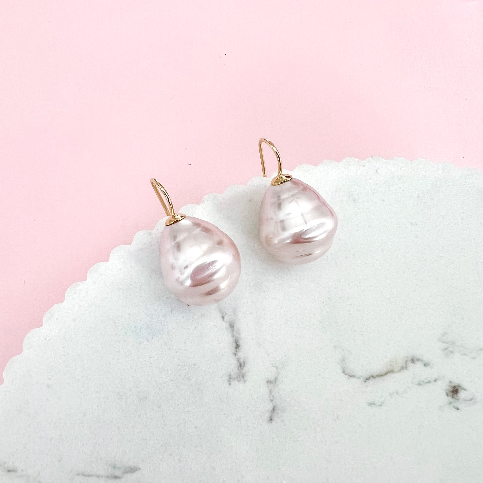 Large Spanish Pearl Earrings - Pale Pink / Gold