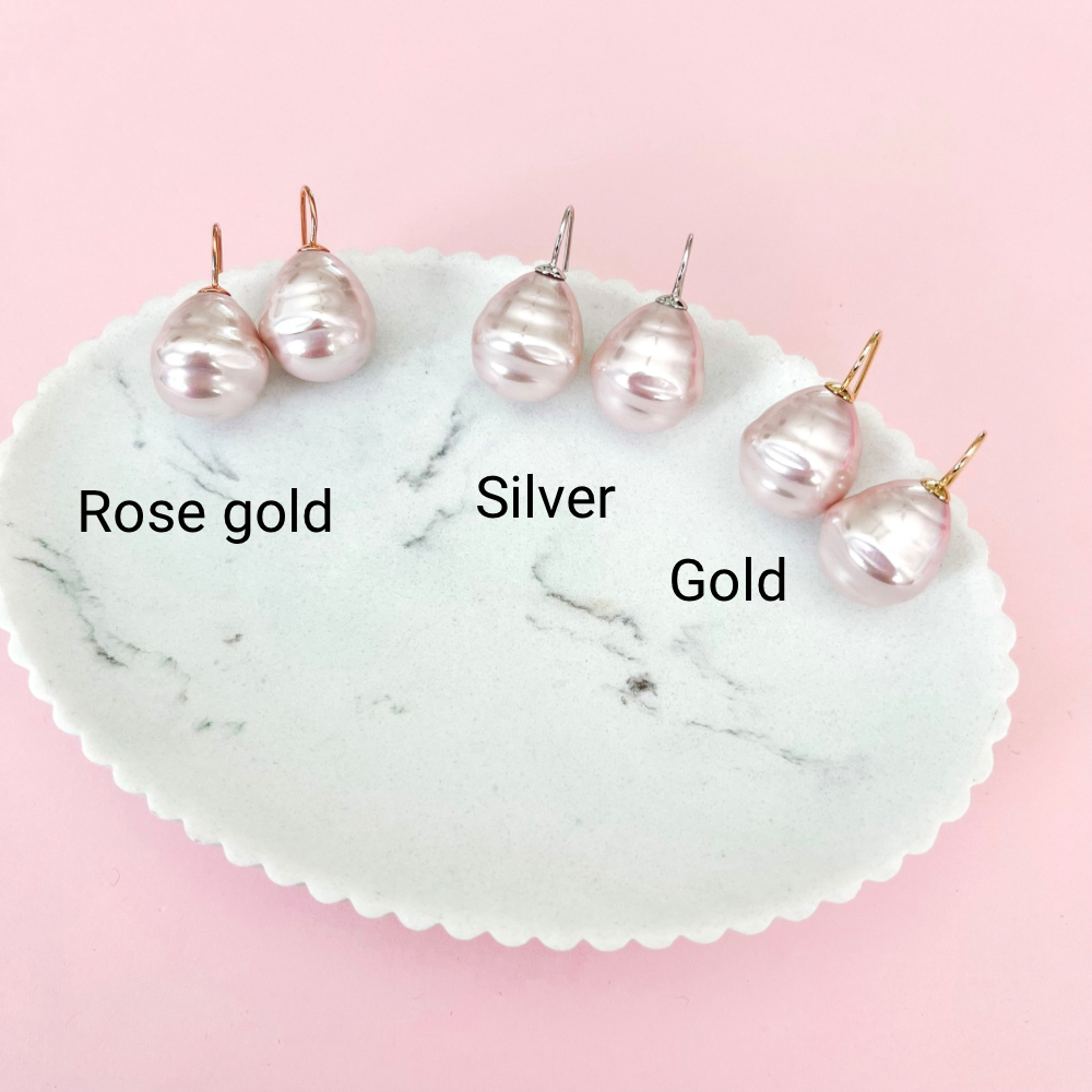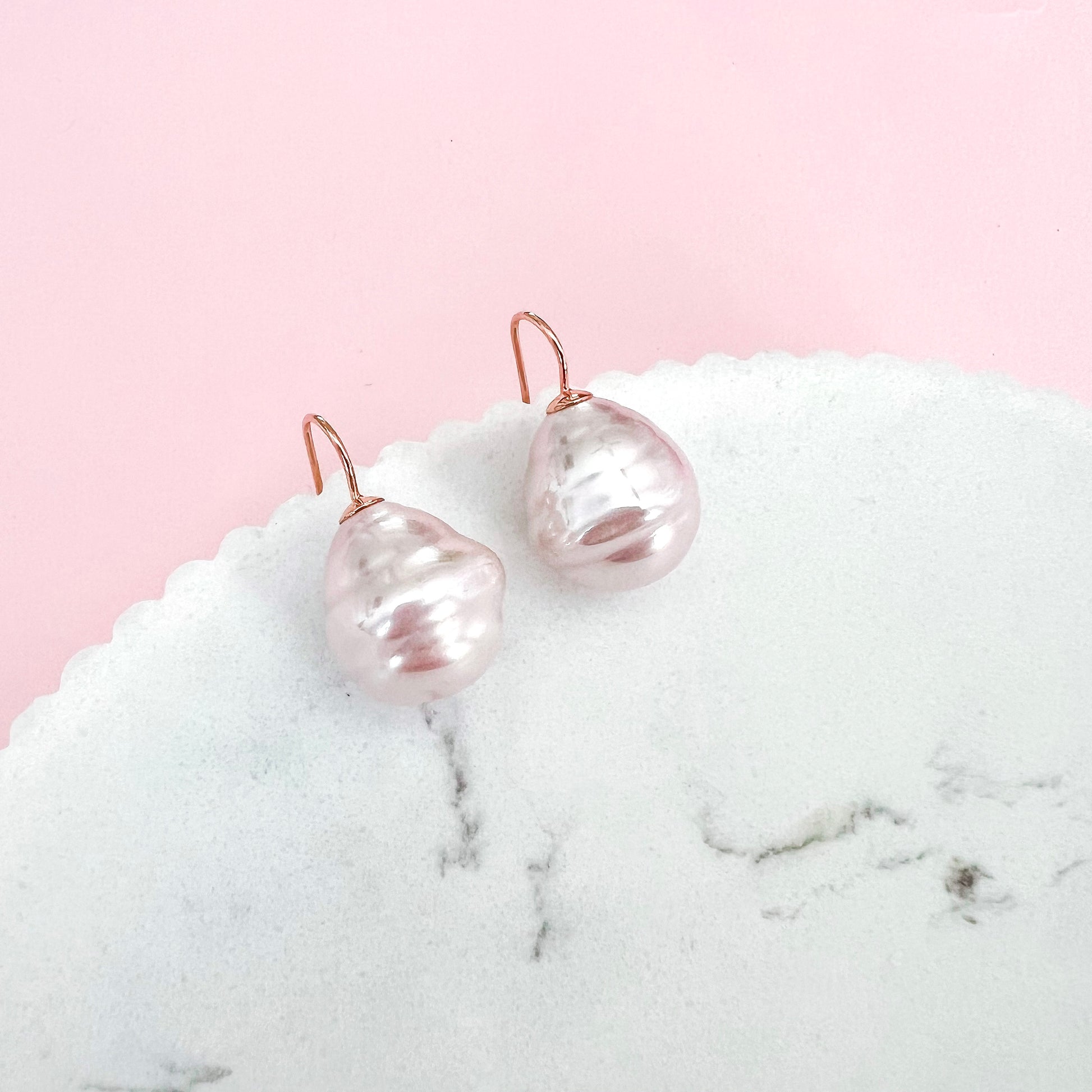 Large Spanish Pearl Earrings - Pale Pink / Rose Gold