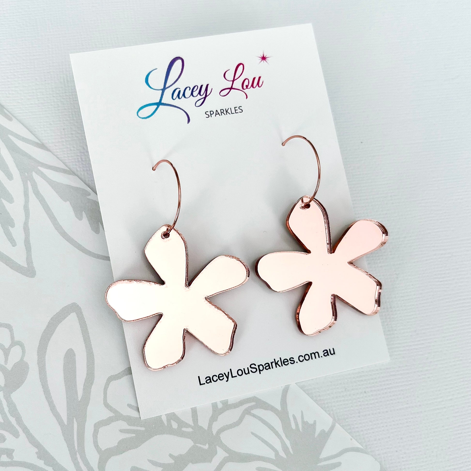 *CLEARANCE* Medium Rose Gold Mirror Flower Earring