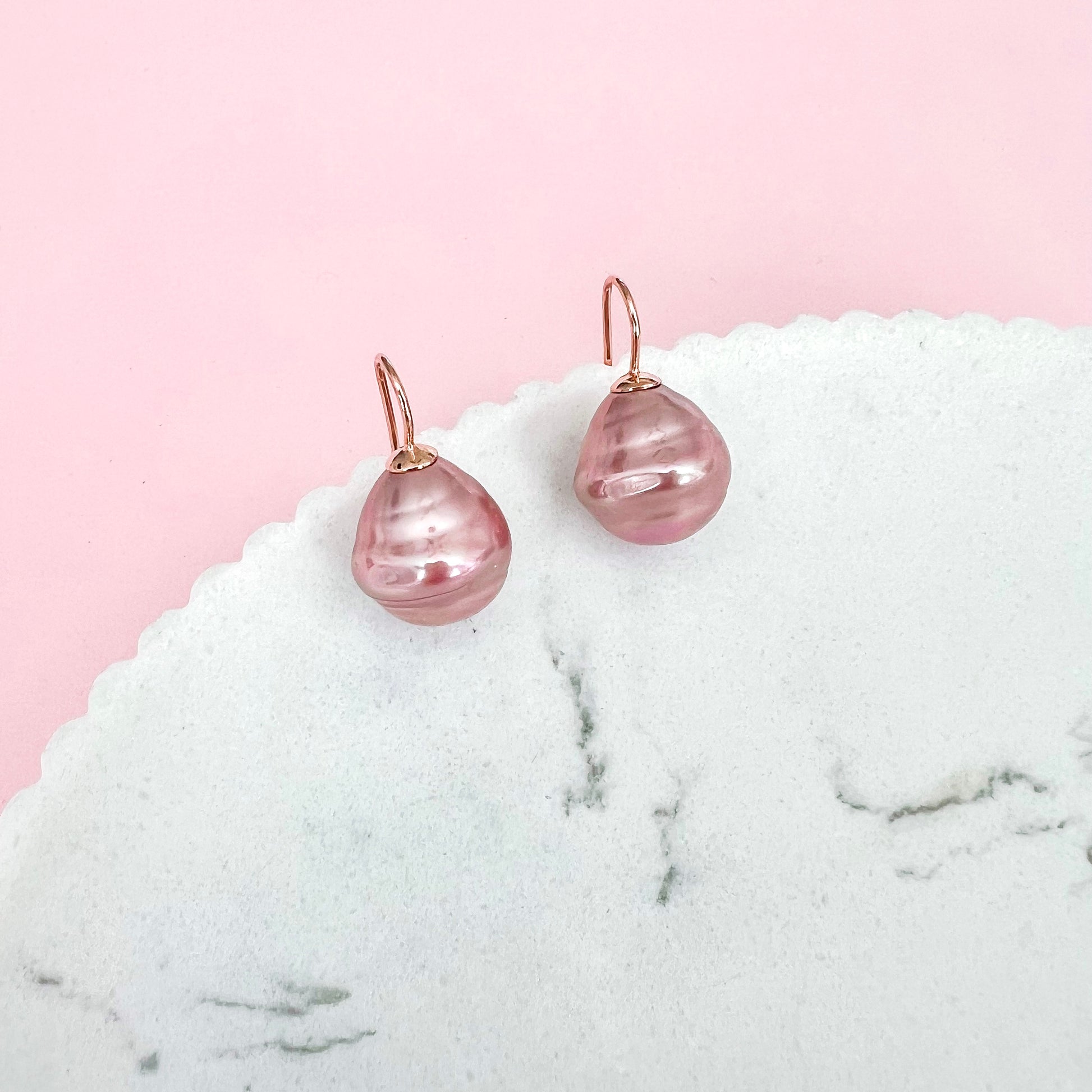 Medium Spanish Pearl Earrings - Mauve / Rose Gold