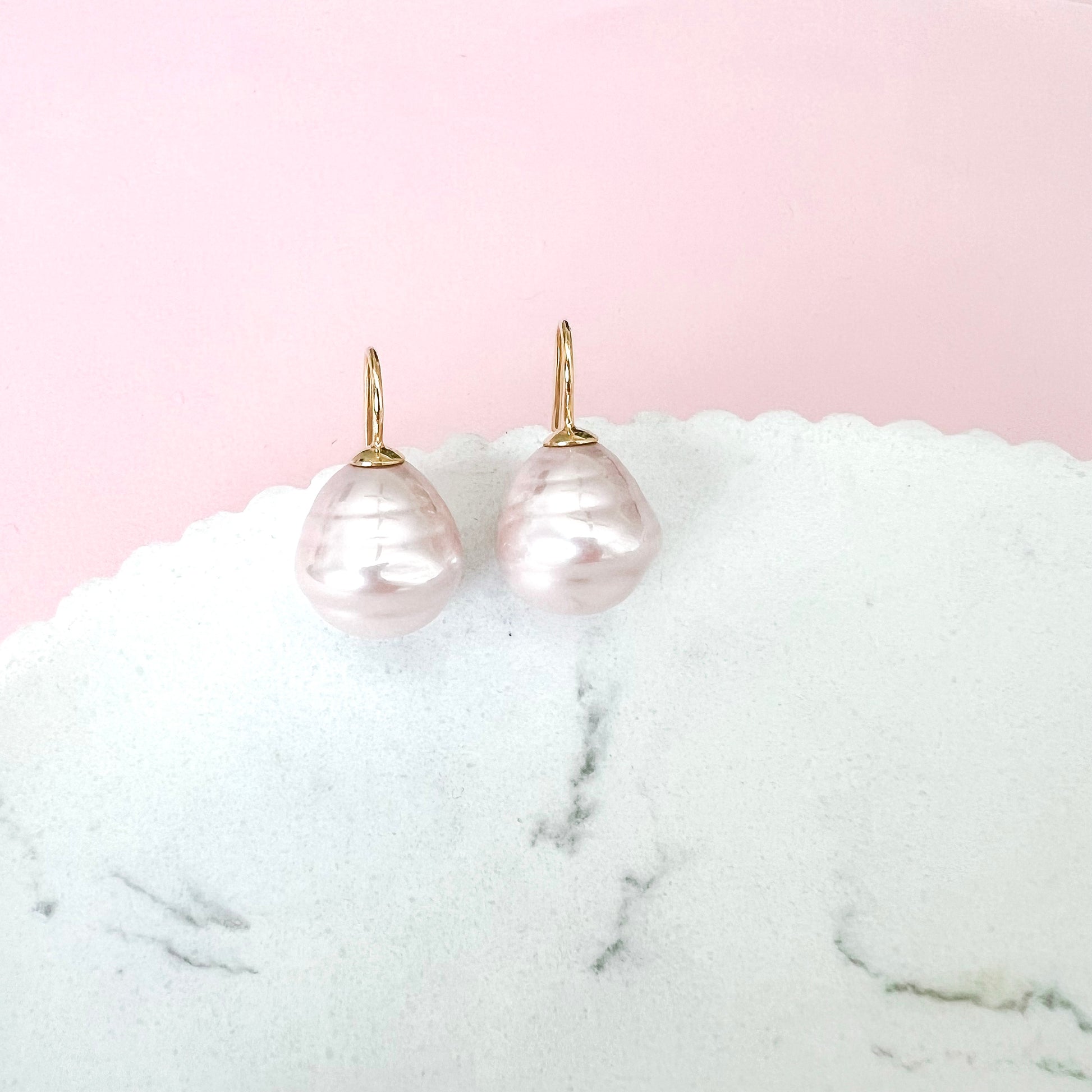 Medium Spanish Pearl Earrings - Pale Pink / Gold