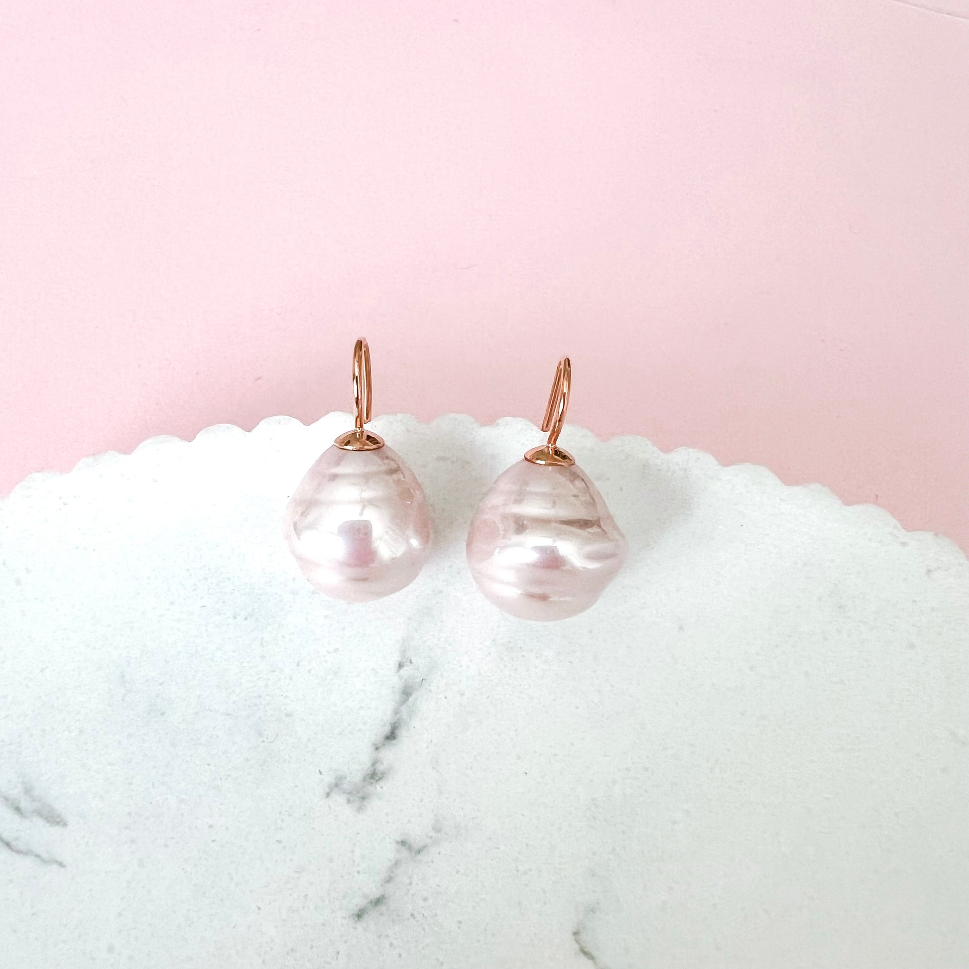 Medium Spanish Pearl Earrings - Pale Pink / Rose Gold