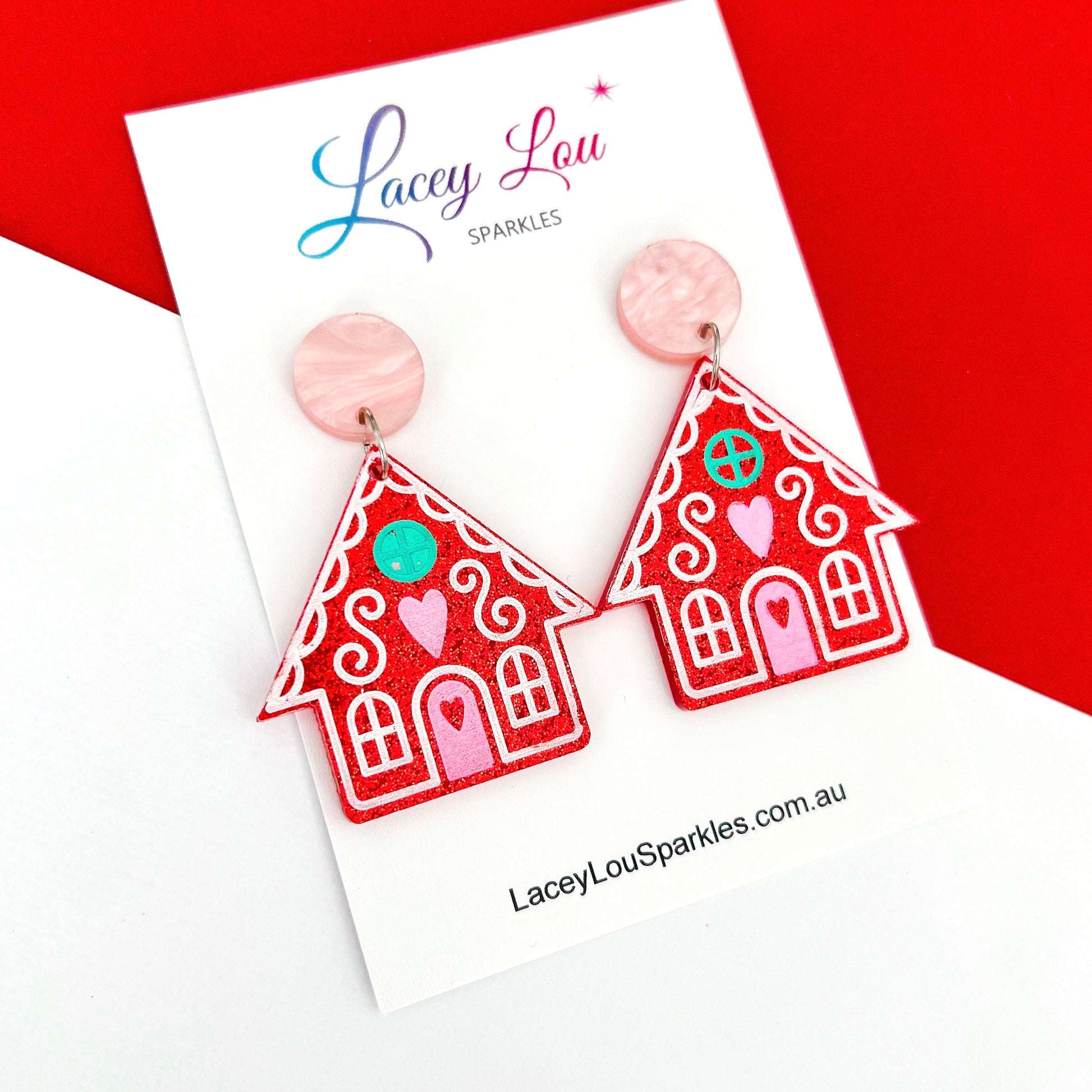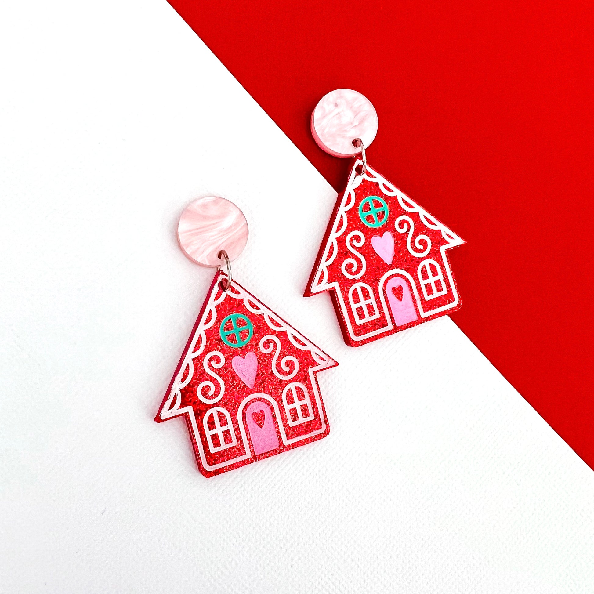Meet our new Gingerbread House statement Christmas earrings. These fun, light-weight festive Gingerbread earrings feature a unique hand painted design on acrylic base.